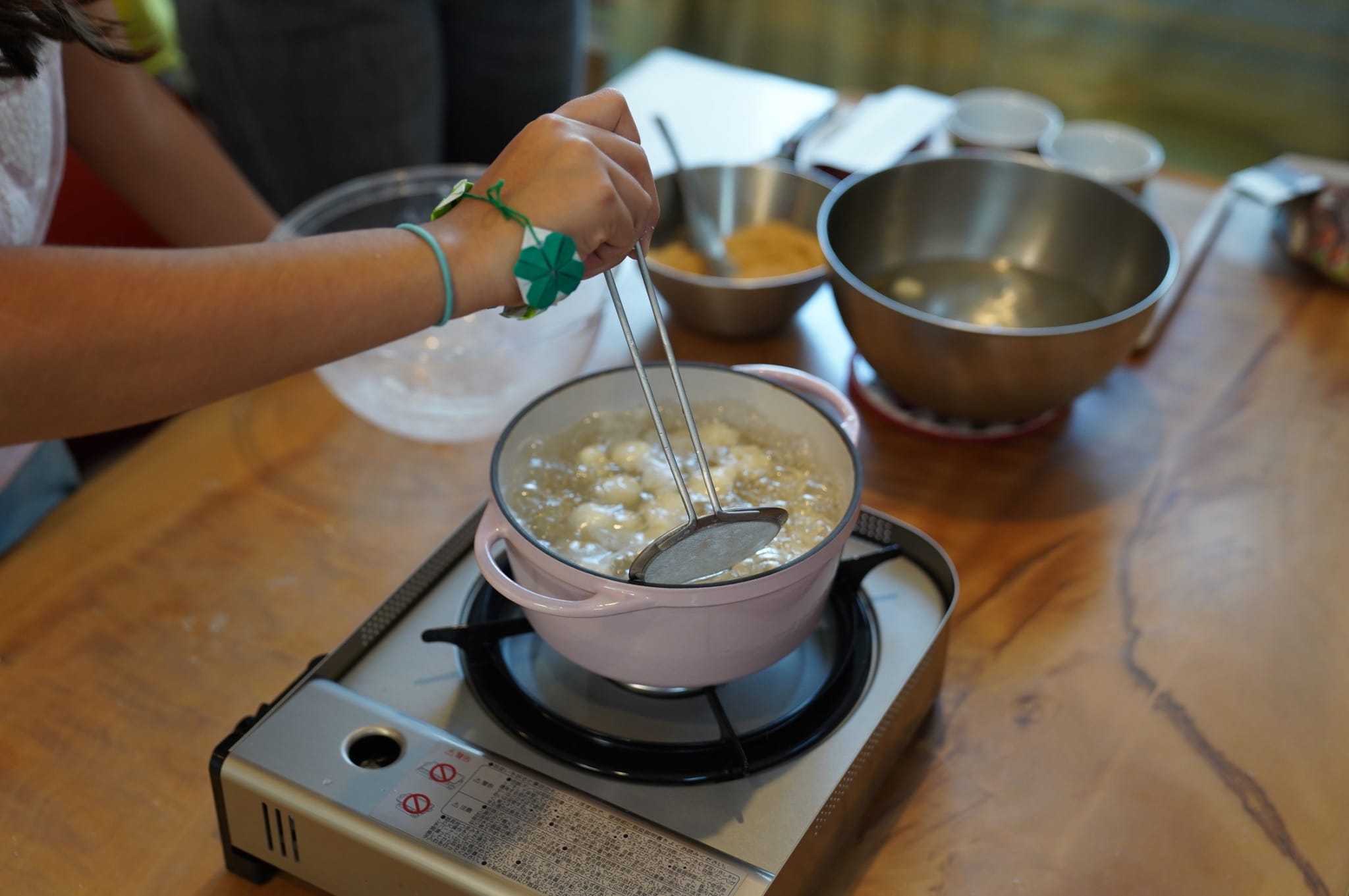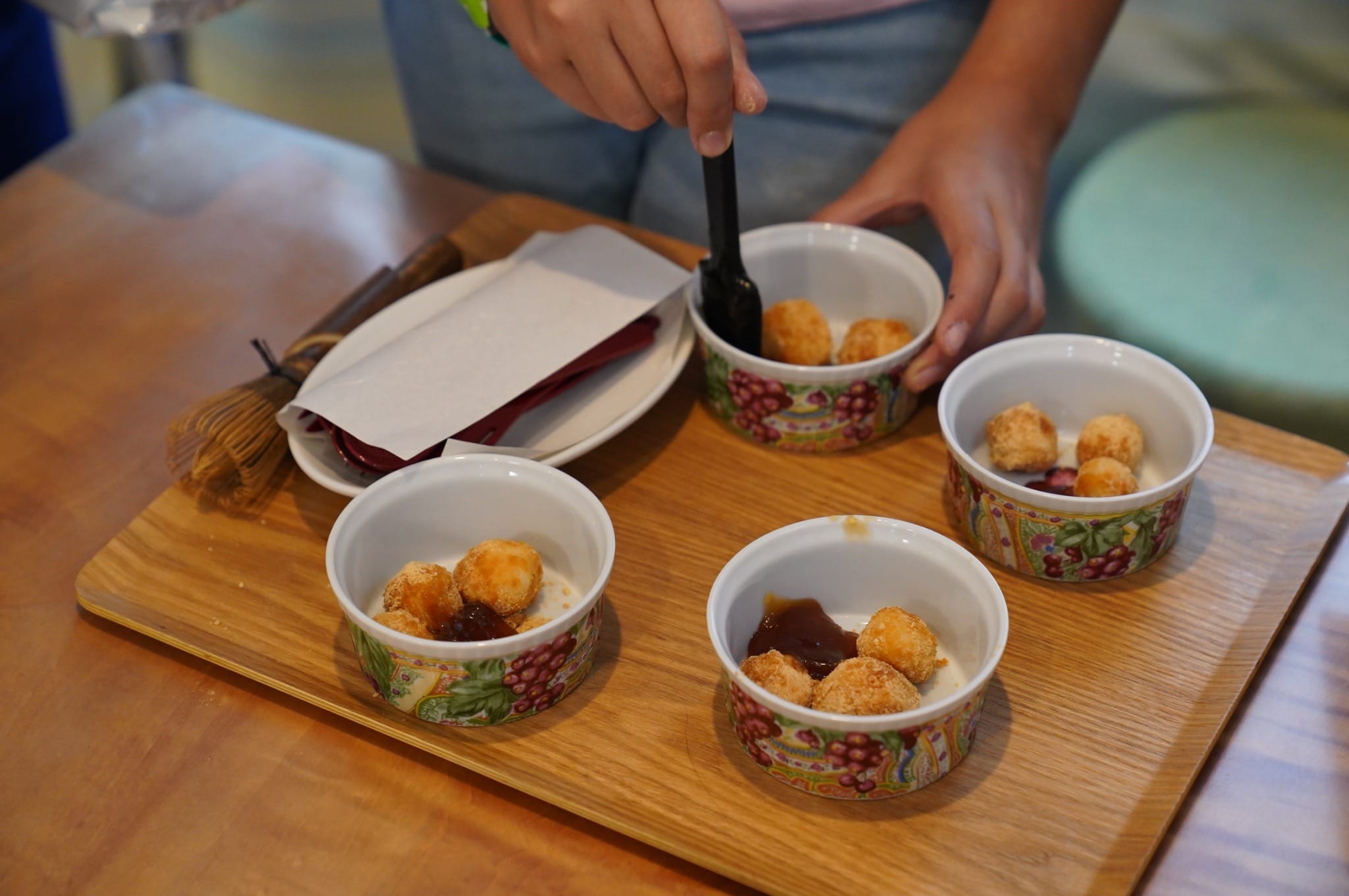 While folding, enjoy Japanese tea and sweets.
